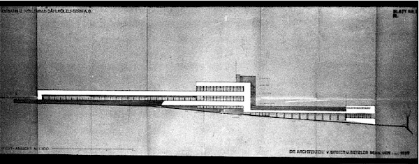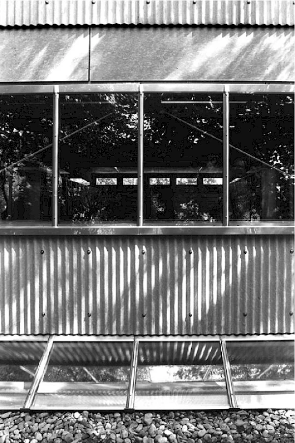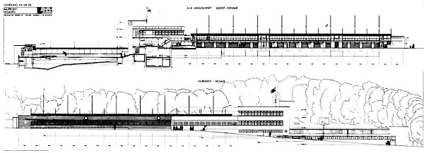 In inhaltlicher Anlehnung an die ursprünglichen Pläne von 1932 wurde die gesamte Garderobennutzung in einem Neubau entlang des Planschbecken zusammengefasst. Der Neubau übernimmt vom Bauprojekt 1932 die Idee der Publikumserschliessung als Anlagerückgrat. Der Gang verbindet geradlinig und ohne Niveauunterschiede alle Garderoben mit Haupteingang, Treppenhaus und Lift. Im Querschnitt ist der neue Garderobentrakt gegen das Bad hin abgestuft - entsprechend den aussenräumlichen Gestaltungsmerkmalen der Ka-We-De.